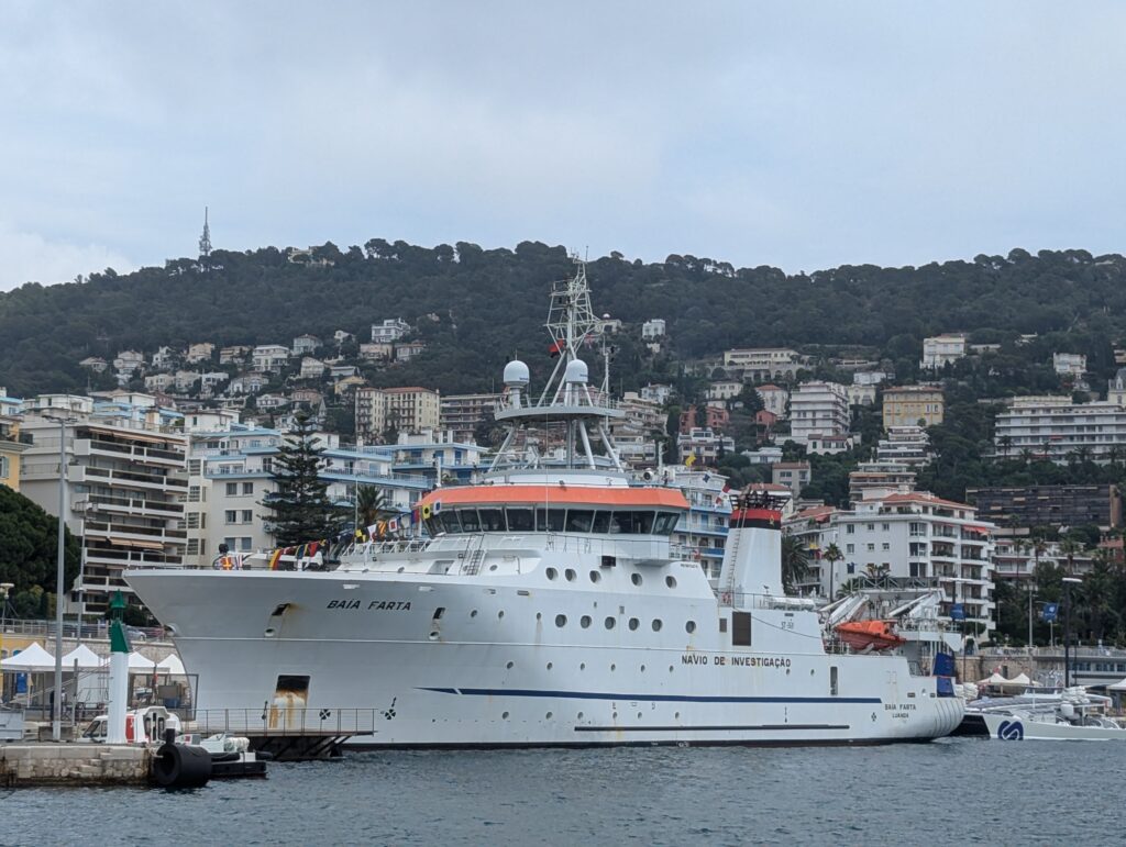 En cette semaine du One Ocean Science Congress, organisé en amont de l’UNOC-3 à Nice, les quais du Port Lympia arborent un nouveau visage. Des tentes et structures modulaires y ont été installées pour accueillir les participant·es aux différents événements, tandis que l’accès est désormais régulé par des dispositifs de sécurité, et les rues avoisinantes quadrillées par les forces de l’ordre. Sur le quai des Docks, les yachts habituels sont remplacés par des navires ayant fait le déplacement pour l’événement. En face, le quai des Deux-Emmanuels conserve en partie ses fidèles : les petites embarcations colorées de pêche niçoises restent attachées à leurs amarres. Pas très loin, leurs voisins viennent de loin et attirent l’attention : le voilier de l’Expédition « 7ème continent », l’imposant trois mats norvégien Statsraad Lehkuh, puis le navire océanographique sous pavillon angolais : le RV Baía Farta.
