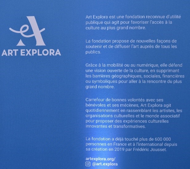 La fondation Art Explora est présente à la Baleine avec une installation immersive et numérique composé d’une centaine de LED et au port avec un flambant neuf catamaran de 47 mètres de long conçu avec des matériaux techniques très poussés pour en faire un bateau-musée